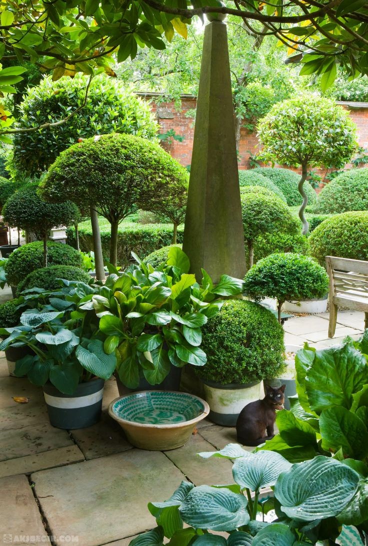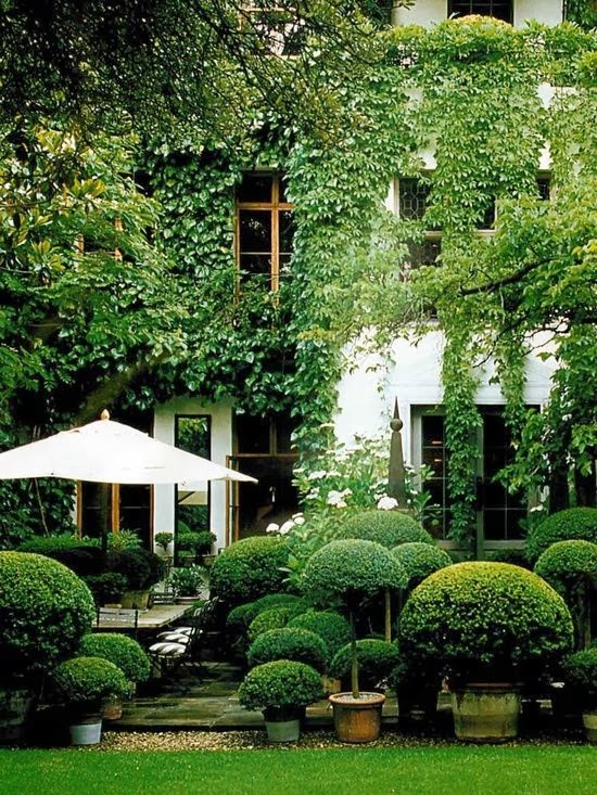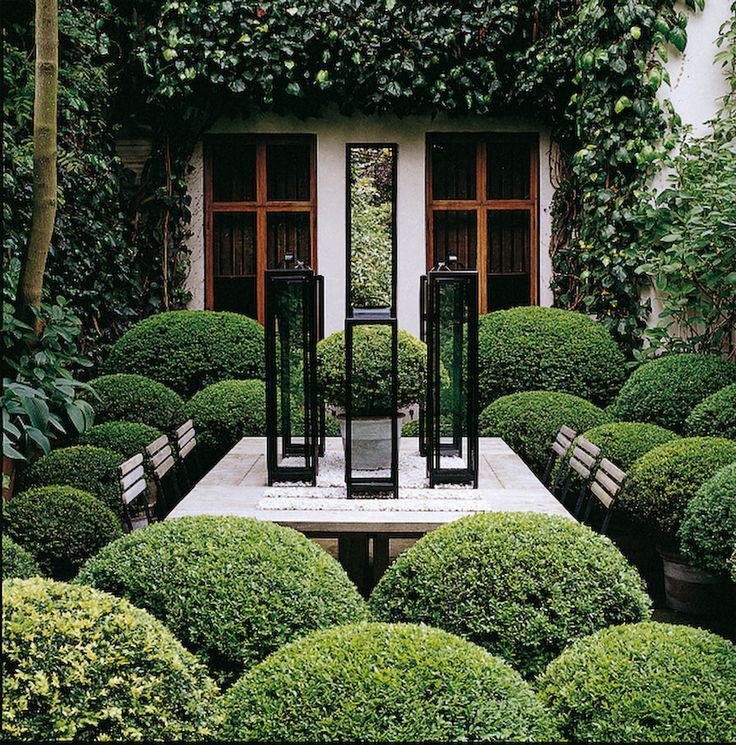 I am intrigued by Anouska Hempel’s landscapes. Her gardens are green and very structured. They seem like a modern take on what old British gardens used to be like.