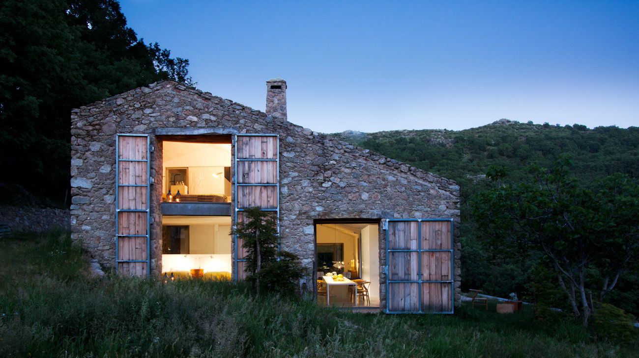 I discovered this barn on the internet yesterday and it took my breath away. It was an abandoned barn in Extremadura, Spain that someone bought and turned into a vacation home. With the help of Abaton, a Spanish architectural firm, they were able to turn a dilapidated barn into the perfect rustic getaway. The addition of the over-sized wooden shutters add a modern touch yet blend will the the aged stone. I like the minimal use of furniture in the home as to not deflect attention from the generous view. The mid-century furniture is a nice touch of simplistic style.